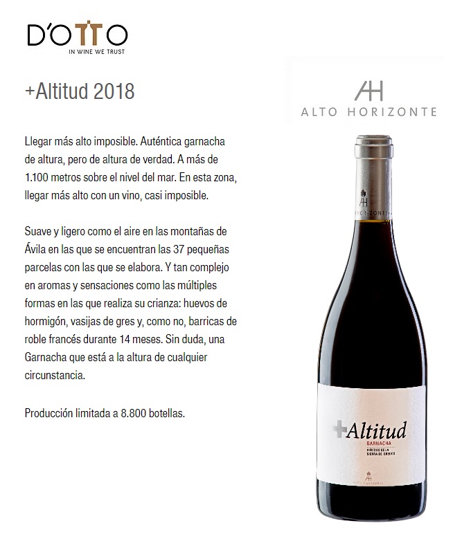 Suave y ligero como el aire en las montañas de Ávila en las que se encuentran las 37 pequeñas parcelas con las que se elabora. Y tan complejo en aromas y sensaciones como las múltiples formas en las que realiza su crianza: huevos de hormigón, vasijas de gres y, como no, barricas de roble francés durante 14 meses. Sin duda, una Garnacha que está a la altura de cualquier circunstancia.